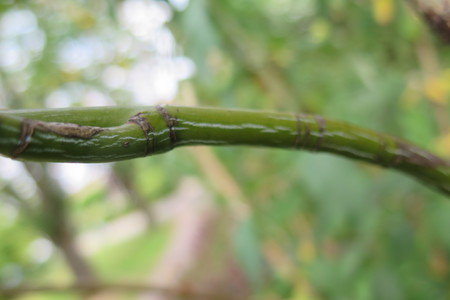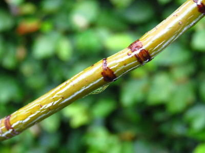 stukjes bast eraf, zodat je lichte vlekken zien waar de schors een stukje weg is.