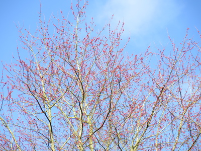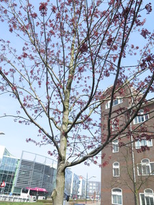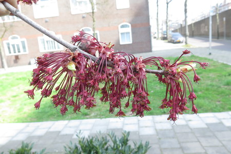 de gewone mooie groene knoppen heeft, en de noorse rode knoppen. Esdoorns herken