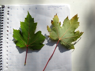 De Gewones esdoorn zie je het meest, aan de rand van het bos of een weiland. Grote bladeren met 3-5 lobben, eerst een gladde stam, later vallen er vierkante stukjes bast af (bij flink grote bomen met stam meer dan 3 bovenbenen dik). De Noorse esdoorn vind je in het bos en niet vooral aan de rand. Ook de veldesdoorn is een boom die meestal in de rand van het bos staat.
