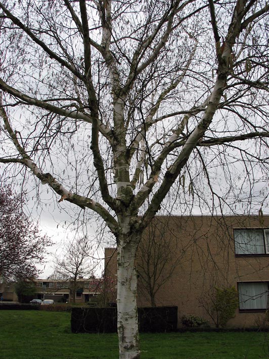 Voor determinatiedetails zie de hoofdsleutel en de boomfamilie pagina. De determinatie van deze soort is problematisch want ik ben niet zeker van deze determinatie. Er zijn nog meer sier-berken die het zouden kunnen zijn.